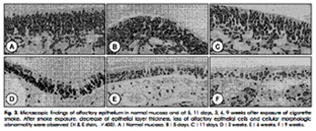 º» ºÐ¾ß¿¡¼´Â ´ã¹è¿¡ ÀÇÇÑ Èİ¢»óÇÇ ¼¼Æ÷ÀÇ ÆÄ±« ¹× Àç»ý°úÁ¤¿¡ ´ëÇÑ ¿¬±¸¸¦ ÀÌ¹Ì ¼öÇàÇÏ¿´À¸¸ç, ¾ÕÀ¸·Î Áٱ⼼Æ÷ µîÀ» ÀÌ¿ëÇÑ ¼Õ»óÇÑ Èİ¢»óÇÇ ¼¼Æ÷ÀÇ ºÐÈ ¹× Àç»ý¿¡ ´ëÇÑ ¿¬±¸¸¦ °èȹ ÁßÀÌ´Ù. ´ã¹è¿¬±â¿¡ ³ëÃâµÈ ¹é¼ÀÇ Èİ¢»óÇǼ¼Æ÷ÀÇ º¯È¾ç»óÀ¸·Î ù 3ÁÖ°±îÁö ´ã¹è¿¡ ³ëÃâµÈ ¹é¼ÀÇ Èİ¢»óÇǼ¼Æ÷ÀÇ ±¸Á¶Àû ÆÄ±«°¡ µÎµå·¯Áö°Ô °üÂûµÈ´Ù. ¸é¿ªÁ¶Á÷ÈÇÐ Çü±¤»çÁø¿¡¼ Èİ¢ Ç¥Áö´Ü¹é(olfactory marker protein, OMP)À» ÀÌ¿ëÇÏ¿© ´ã¹è¿¬±â¿¡ ³ëÃâÈÄ °¨¼ÒµÈ Èİ¢¼ö¿ë¼¼Æ÷ÀÇ È®ÀÎÀÌ °¡´ÉÇÏ´Ù. |